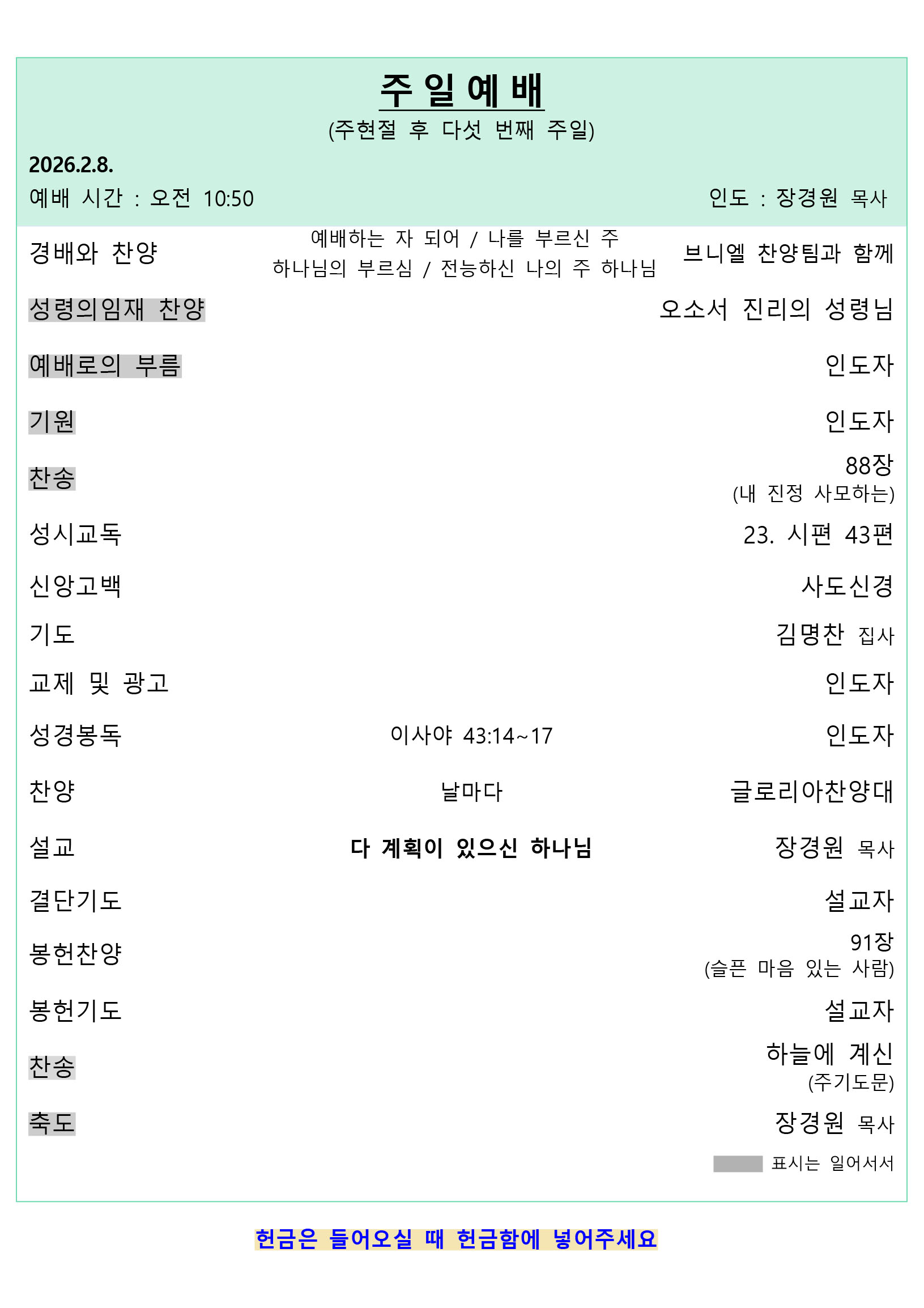 예배 안내