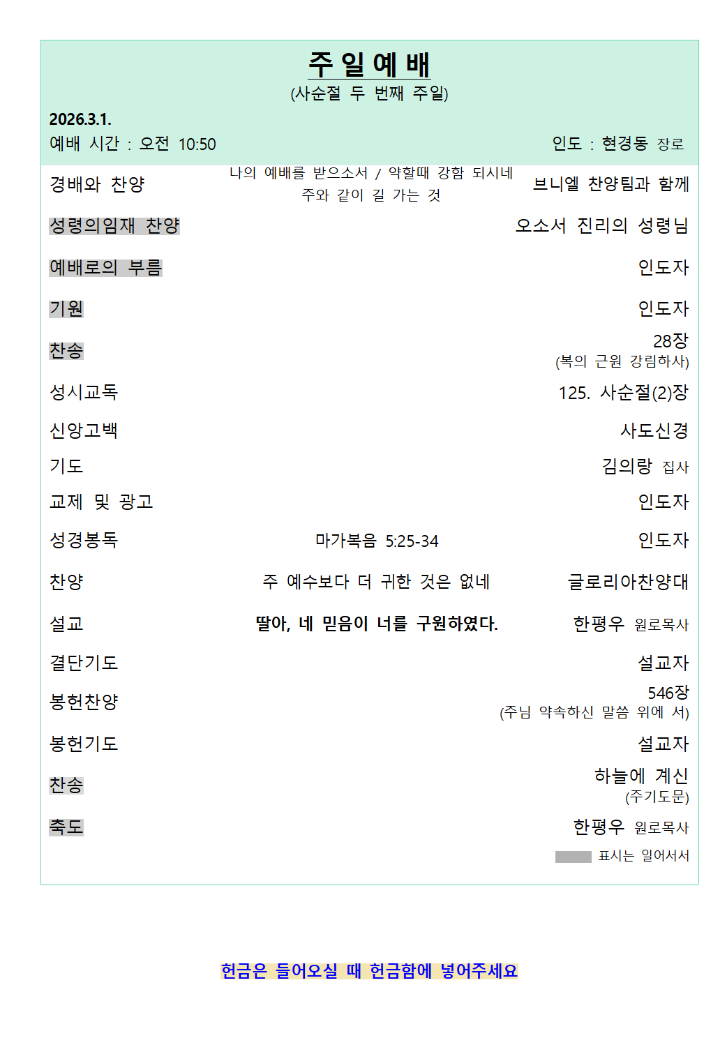 예배 안내