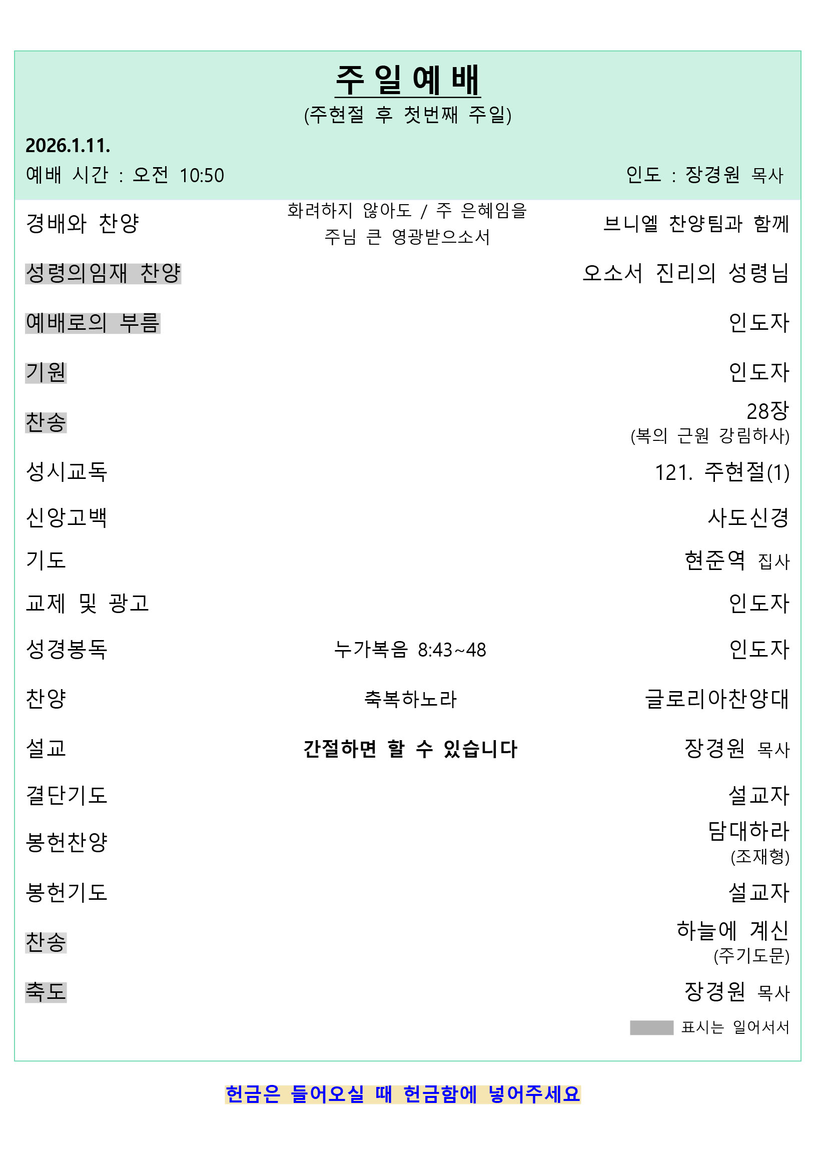 예배 안내